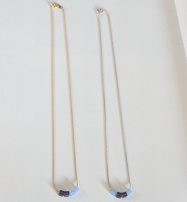 スワロフスキーのキュービックストーンをモチーフにしたネックレスです。張り感のあるチェーンを使用し、ゴールドとシルバーに見合ったストーンの配置を施しています。