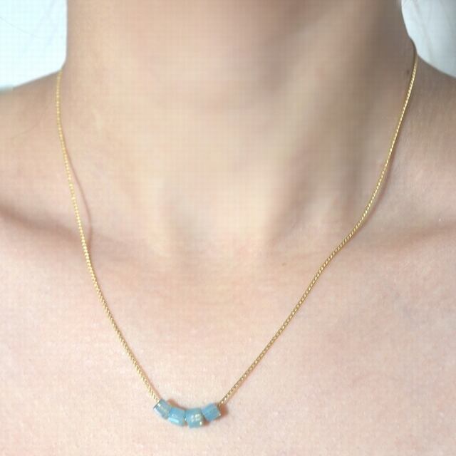 スワロフスキーのキュービックストーンをモチーフにしたネックレスです。ゴールドチェーンには張り感があり、スタイリングを選ばず着用できます。