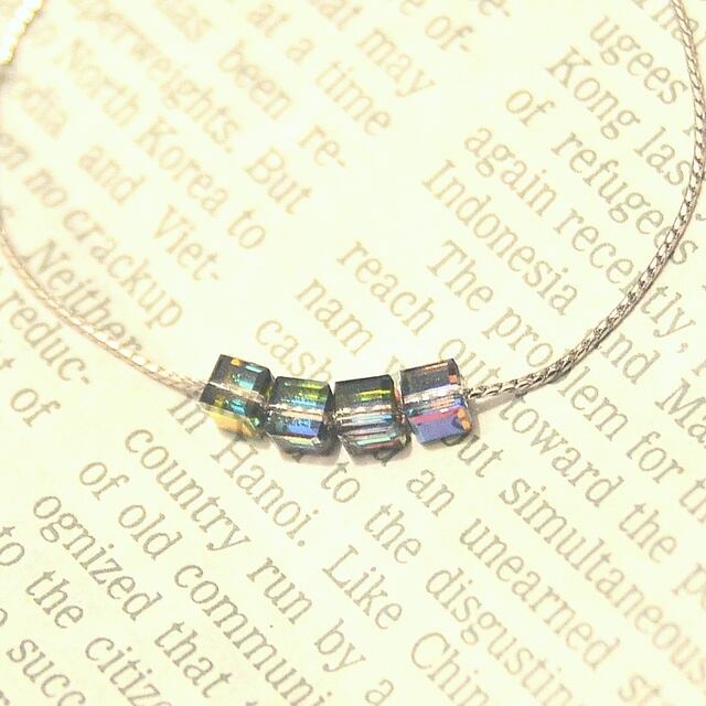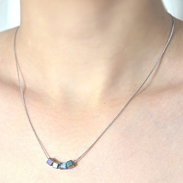 スワロフスキーのキュービックストーンをモチーフにしたネックレスです。チェーンには張り感があり、スタイリングを選ばず着用できます。